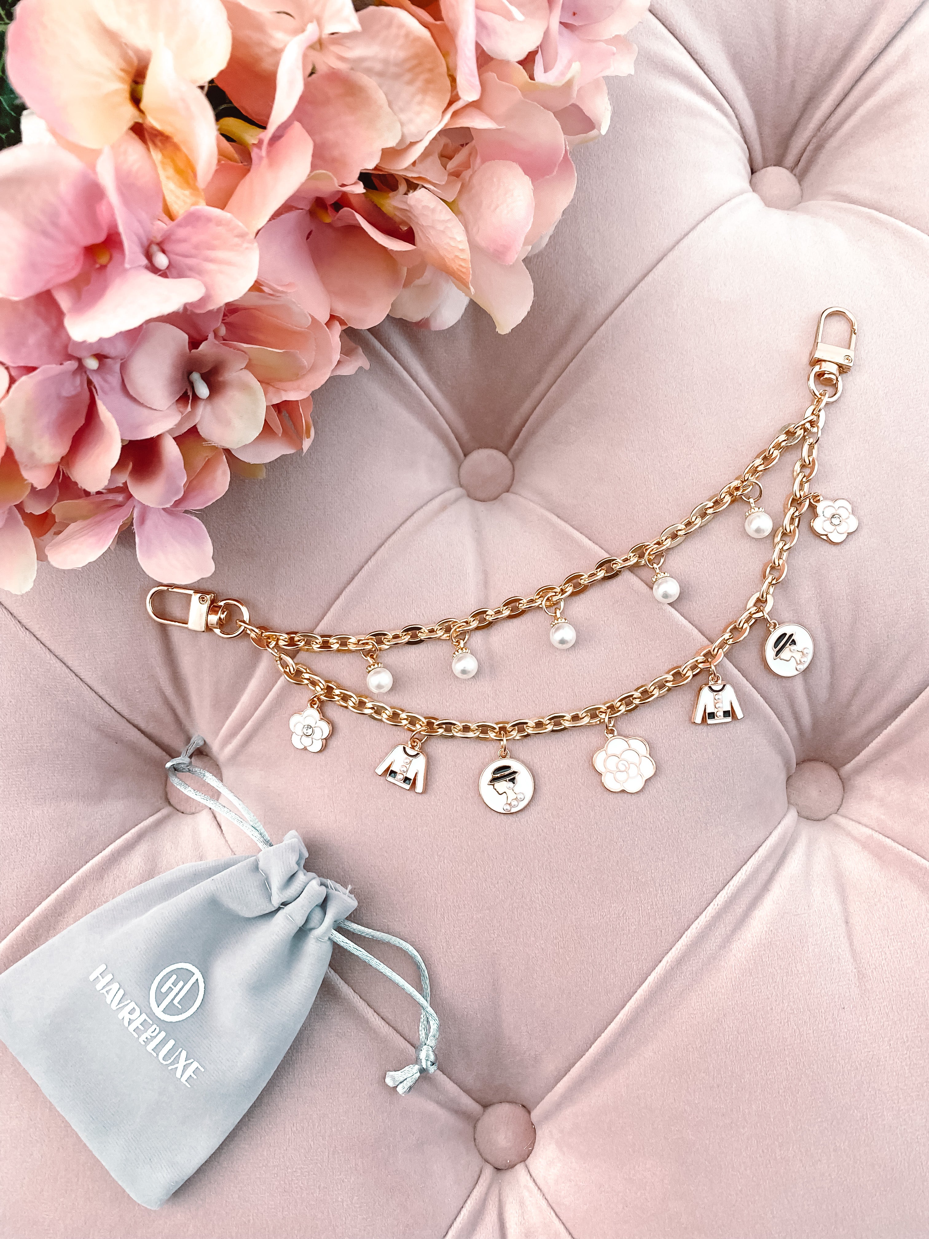 Rehaussez vos accessoires avec nos tout nouveaux charms de sac à main, chacun délicatement conçu pour compléter vos sacs à main de créateurs.